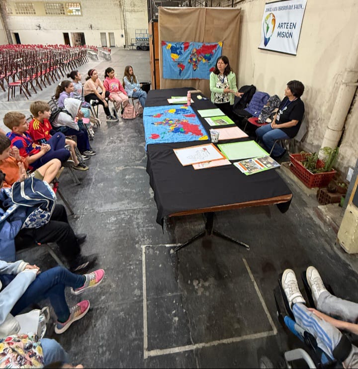 Presentando un planisferio, señalamos varios países visitados en donde seguimos apoyando desde nuestro lugar con oración y ofrendas a los que salieron a regiones más lejanas. Diferentes mapas, fotos y palabras claves fueron algunos de los recursos que nos permitieron captar el interés de este hermoso grupo de 15 niños. Ellos estuvieron muy atentos, interactuaron y pudimos dar algunas respuestas a sus espontáneas preguntas.